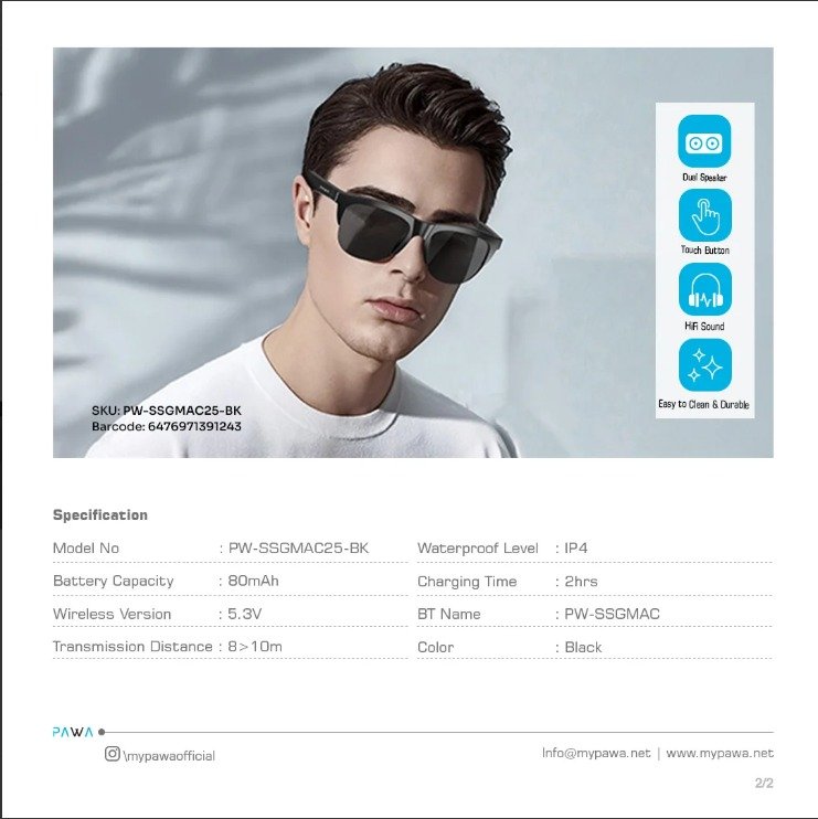 Add to this the advanced noise-canceling microphone system, which makes communicating crystal-clear even in noisy environments. Stay unplugged from your routine and connected to what truly matters with Pawa Smart Sunglasses—a product crafted to simplify and enhance daily living.